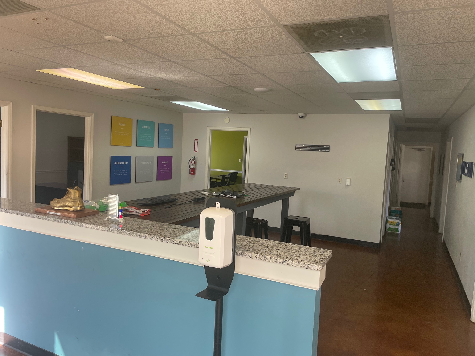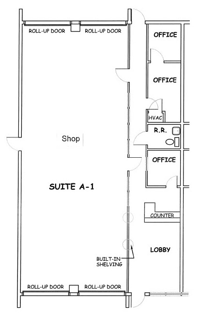 2,520+/- office/showroom, 20' eave height - 24' at center, 6' overhang along south and west walls