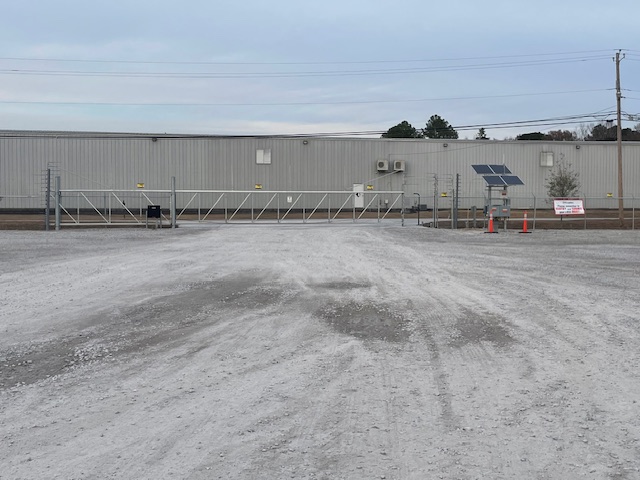 Two access points: 45' electrically operated sliding gate w/main gate and 20' double swing gate